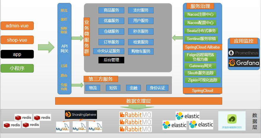 功能,同时提供了客户端负载均衡,服务自动熔断,灰度发布,统一认证,限流流控,日