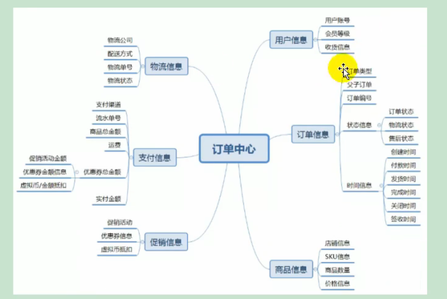 订单模块是电商系统的枢纽,在订单这个环节上需求获取多个模块的数据和信息,同时对这些信息进行加工处理后流向下个环节。这一系列就构成了订单的信息流通。
