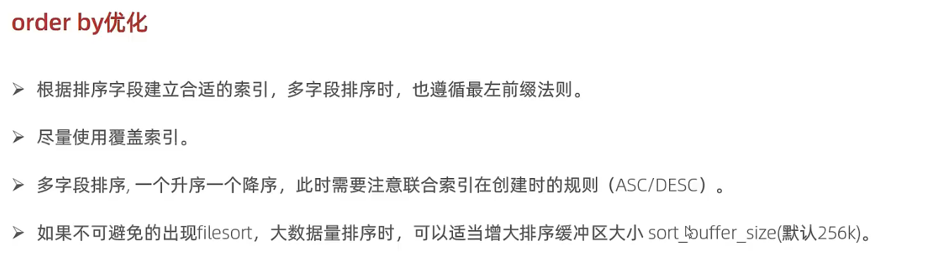 排序字段列表 ASC