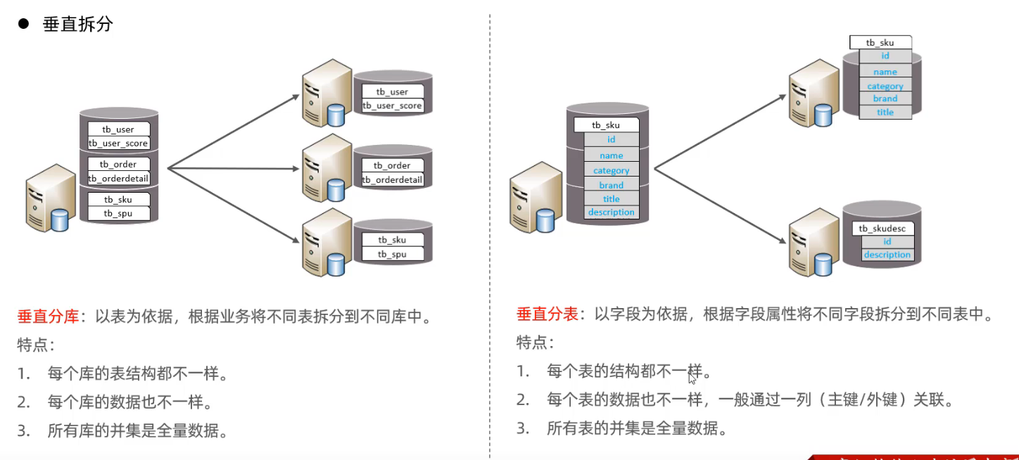 - 垂直分库