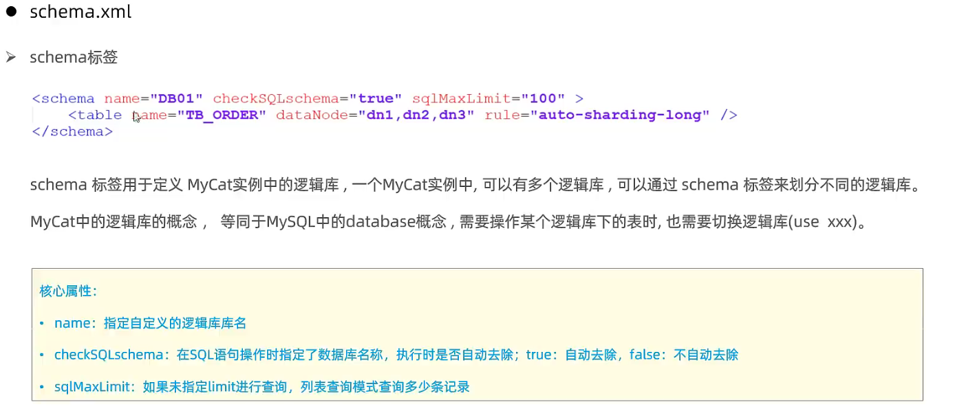 <!--No MyCAT Database selected 错误前会尝试使用该schema作为schema,不设置则为null,报错 -->