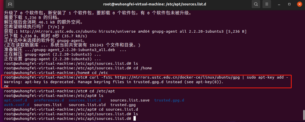 curl -fsSL https://mirrors.ustc.edu.cn/docker-ce/linux/ubuntu/gpg | sudo apt-key add -