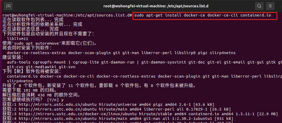 sudo apt-get install docker-ce docker-ce-cli containerd.io -y