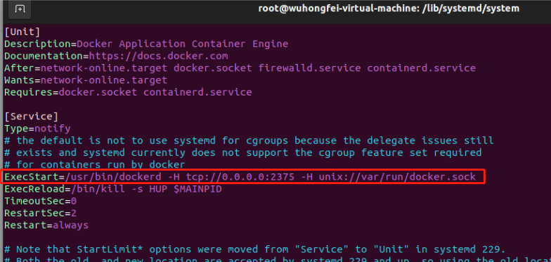 #ExecStart=/usr/bin/dockerd -H tcp://0.0.0.0:2375 -H unix://var/run/docker.sock