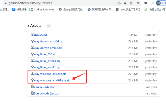 //一般会下载这个64位的,可根据自己的电脑自行选择 Github: https://github.com/chaitin/xray/releases