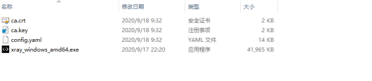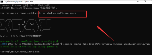 //解压xray只发现一个exe文件,先不要运行,进入到该目录下的命令行模式输入命令 xray_windows_amd64.exe genca