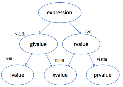 纯右值 : prvalue 是没有标识符、不可以取地址的表达式,一般为“临时对象”。