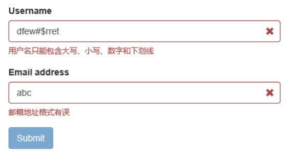 更多验证类型详见:http://bv.doc.javake.cn/validators/。当然涉及中文的验证可能会有些小问题,园友们如果有需要可以自行下去用代码测试下。