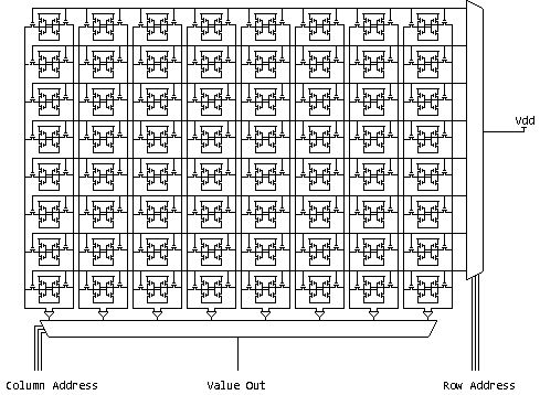 A sense amplifier will have both bitlines as input and will return a single bit which is representing the value stored in the cell. Memory arrays are organized as row and columns (like a table). Rows are accessed using the Wordline, Columns are accessed by selecting a Bitline. In order to select a row or column we need address encoders.