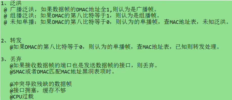 交换机转发数据帧是依靠mac地址表来转发报文的。交换机转发数据帧时的三种转发行为: