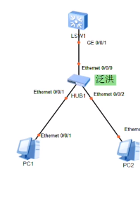 集线器在转发数据时,只存在泛洪这一种转发行为。导致在sw的1口可以同时学到pc1和pc2的mac。当pc1在向pc2发送单播帧时,数据帧到达集线器,被泛洪给pc2收到,同时也会被泛洪给sw收到,根据上述第三条原则,sw会丢弃该数据帧。如果sw不丢弃,就会导致pc2收到重复的数据帧