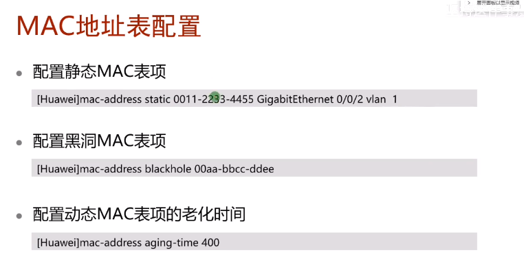 vlan之间是二层隔离的,so在trunk接口上配置静态mac地址时,需要在后面加vlan号//因为可能会从不同的vlan学到相同的mac