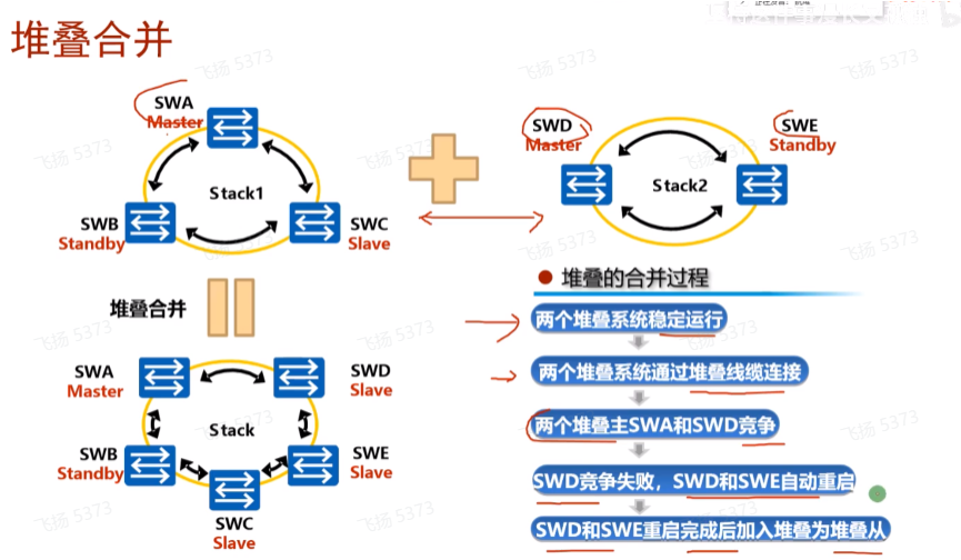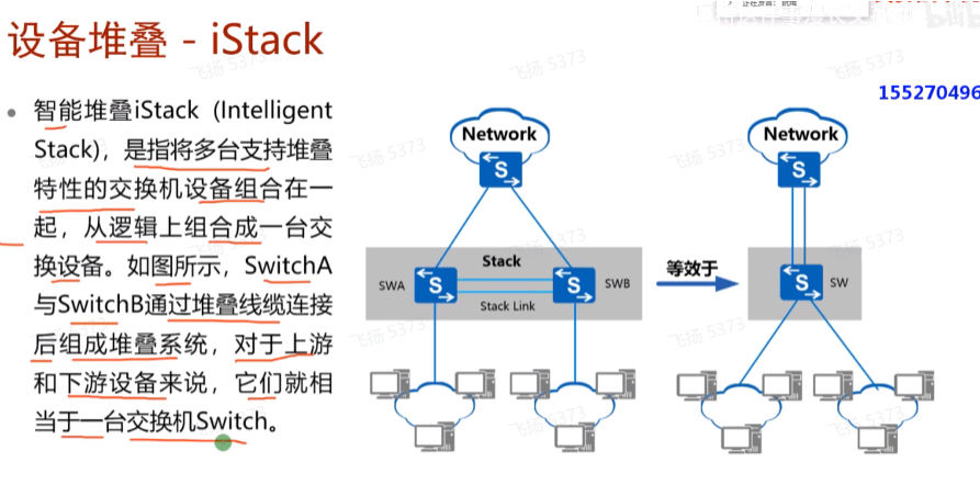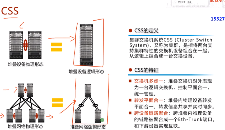 堆叠:存在两种:1.istack-智能堆叠,一般用于盒式sw,如s5700,ce5800,ce6800,最多支持9台;2.css-cluster switch system,一般用于框式sw,最多支持2台,如S12700。这两种本质都是堆叠技术。