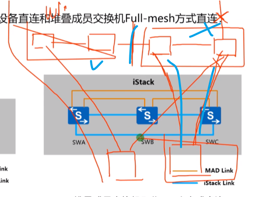 堆叠线的工作:同步配置,同步mac地址表项,路由信息的维护,都需要在堆叠线路上同步。业务流量如果也通过这个堆叠线路进行同步的话,会增加堆叠线路的负担。