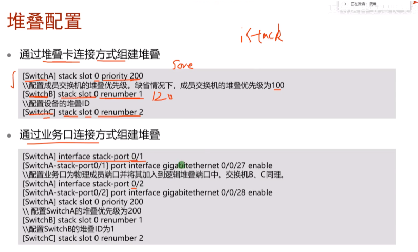 s系列sw的堆叠配置,slot 0就是堆叠id为0。通过业务口的方式,堆叠口在盒式堆叠istack中只能创建2个,0/1和0/2,意味着组网只有链型或环形堆叠。