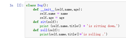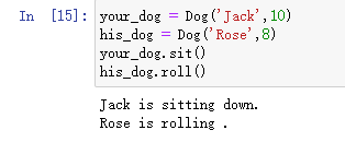 创建一个Dog类,然后赋予其名字和年龄将其实例化。我们赋予每个dog坐下和打滚的能力