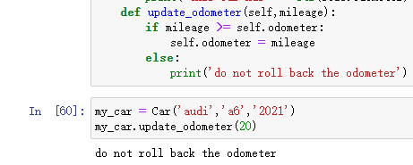 可对方法update_odometer()进行扩展,使其在修改里程表读数时做些额外的工作。下面来添加一些逻辑,禁止任何人将里程表读数往回调.