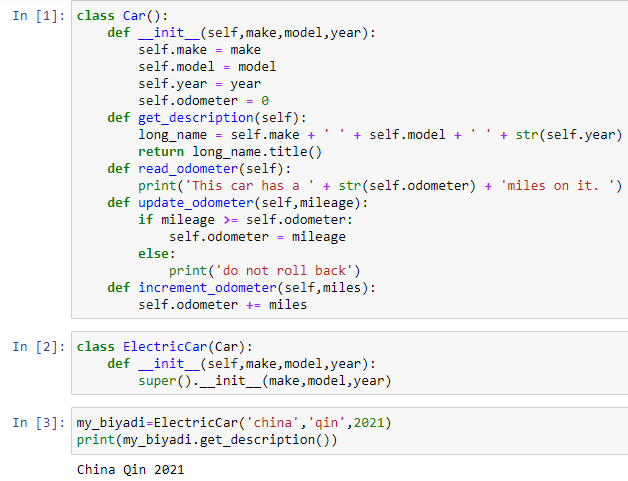 创建子类,父类必须包含其中,方法__init__()接受创建Car实例所需的信息