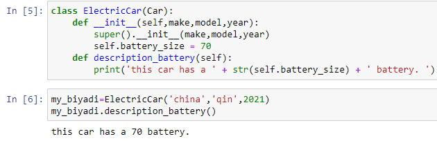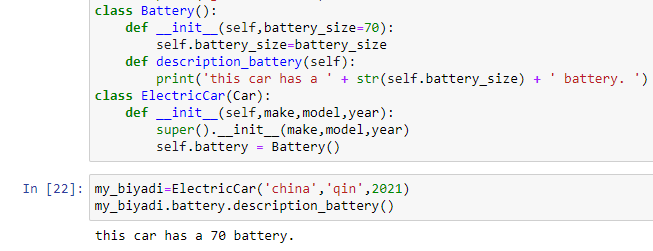 添加一个Battery类,不继承任何父类。在ElectricCar类中调用Battery类,创建一个新的battery实例,存储到自己的self.battery属性中