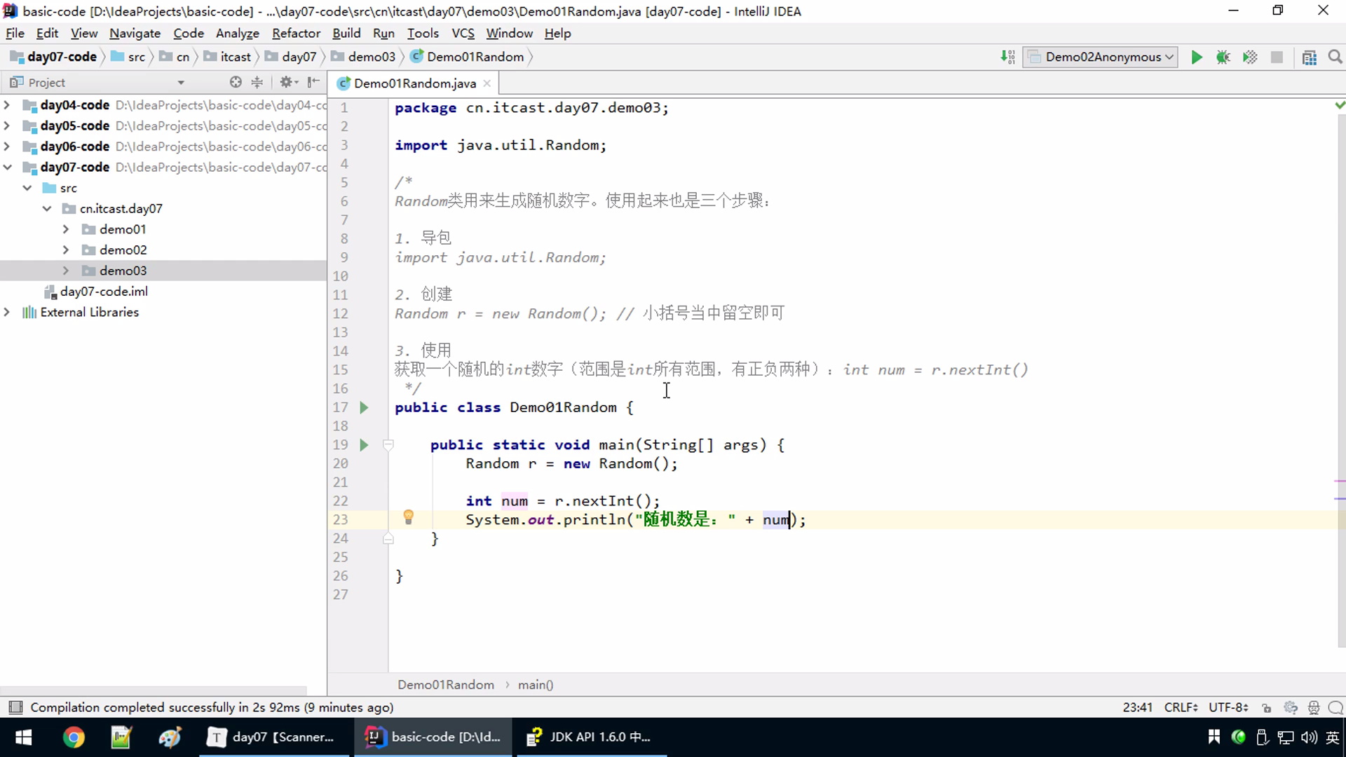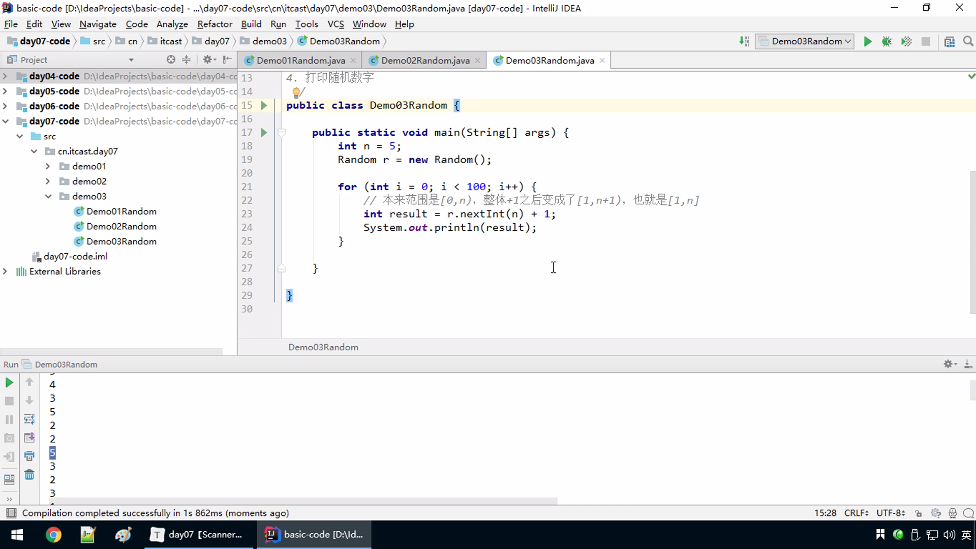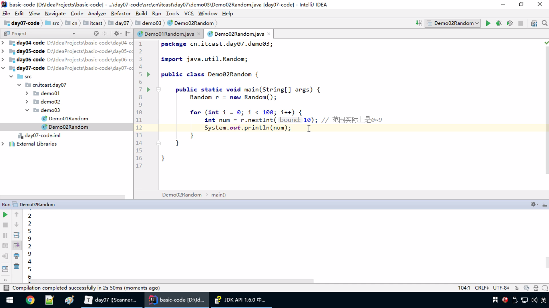 获取一个随机的int数字(参数代表了范围,左闭右开区间):int num = r.nextInt(10)