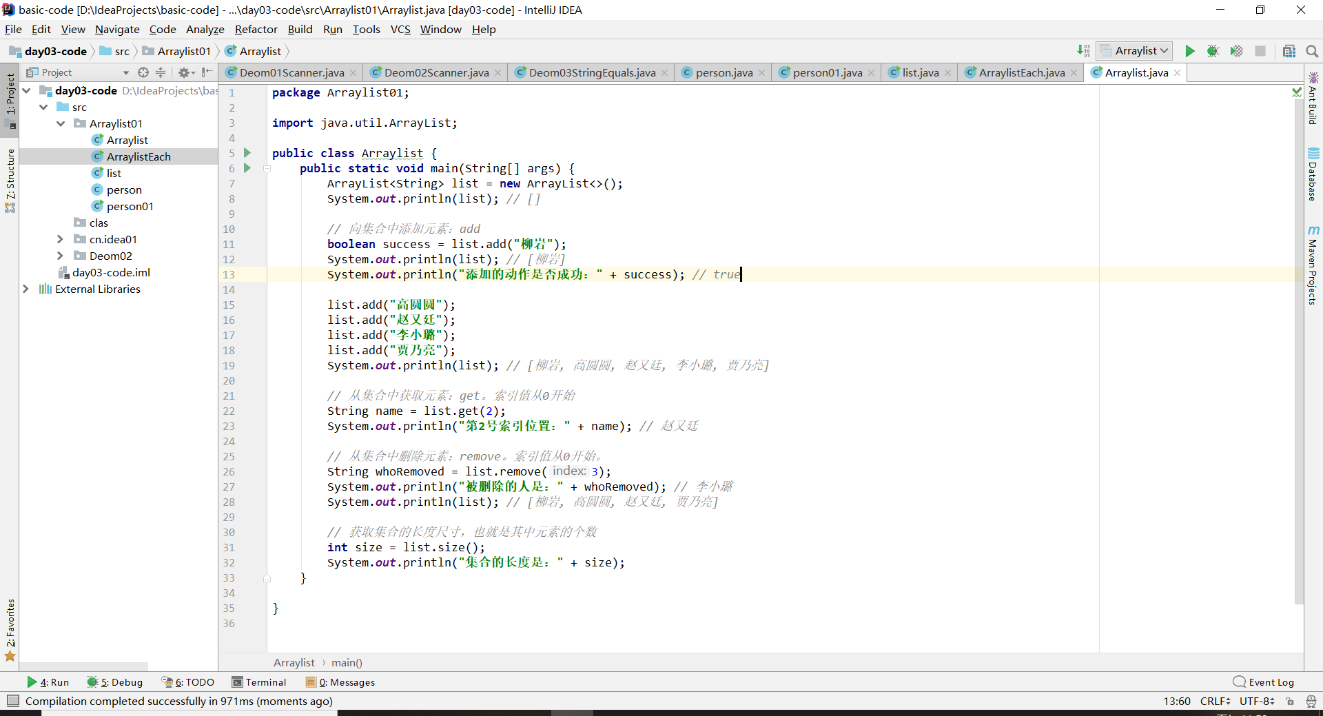 备注:对于ArrayList集合来说,add添加动作一定是成功的,所以返回值可用可不用。