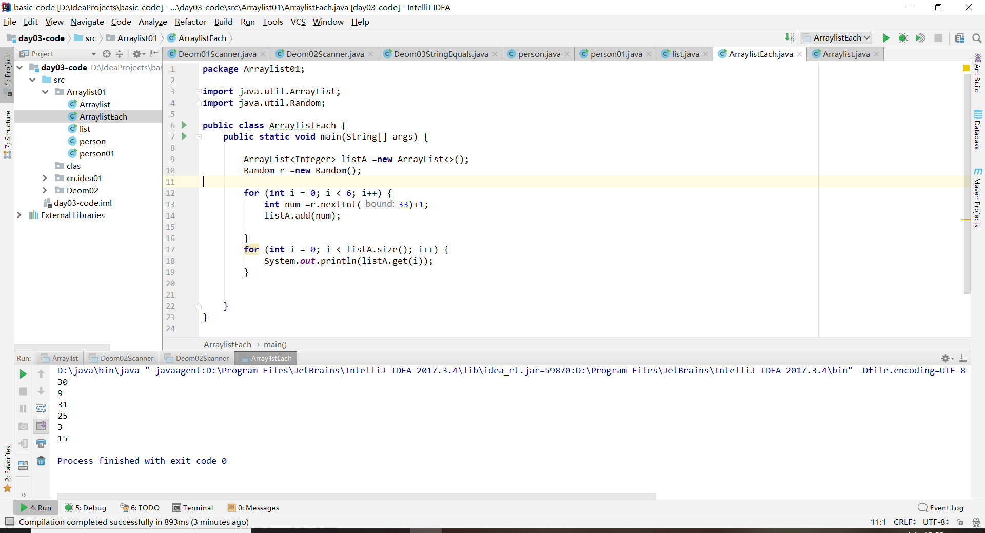 3. 循环20次,把随机数字放入大集合:for循环、add方法