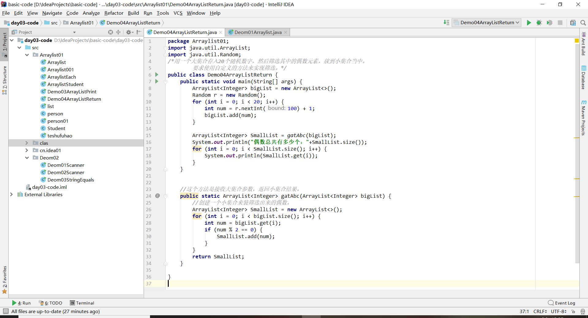 返回值类型:ArrayList小集合(里面元素个数不确定)