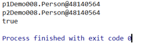 1 package Demo008; 2 3 public class Demo02equals { 4 public static void main(String[] args) { 5 Person p1 = new Person("张三",18); 6 Person p2 = new Person("赵云",18); 7 8 //如果结果是true的话,那它们的地址值就得一样,所以在下面加多一行代码即可。 9 p1=p2; 10 11 12 13 System.out.println("p1"+p1);//p1Demo008.Person@58ceff1 14 System.out.println("p2"+p2);//p2Demo008.Person@7c30a502 15 16 boolean b = p1.equals(p2); 17 System.out.println(b);//false 18 19 20 } 21 }