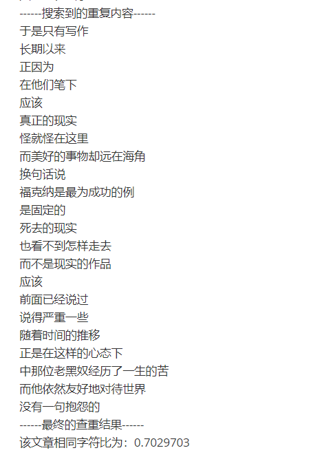 设计一个论文查重算法,给出一个原文文件和一个在这份原文上经过了增删改的抄袭版论文的文件,在答案文件中输出其重复率。