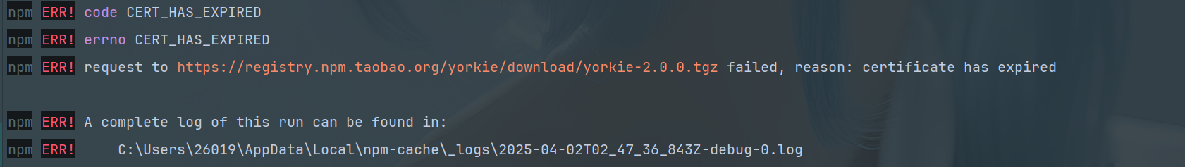1.今天使用vue本地编辑启动的时候,发现npm执行命令一直报错证书过期,换了数据源也没用,后面百度发现可以这样解决:这是因为安全证书过期