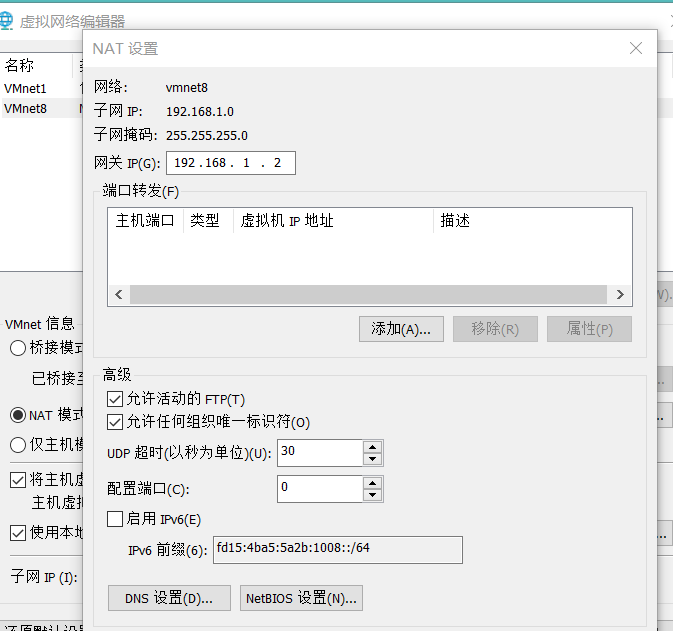 虚拟网络编辑器上net子网ip改为192.168.1.0 网关ip与vmnet8虚拟网卡网关再同一个网段