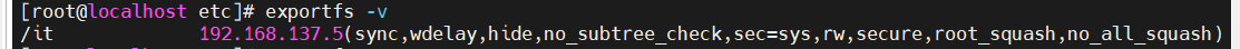 允许主机192.168.137.5的用户挂载/it目录可读可写(exports文件里添加)