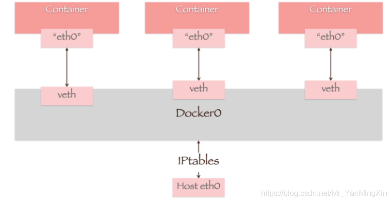 我们每启动一个docker容器,docker就会给容器分配一个默认的可用ip,我们只要安装了docker,就会有一个网卡docker0(bridge)。网卡采用桥接模式,并使用veth-pair技术