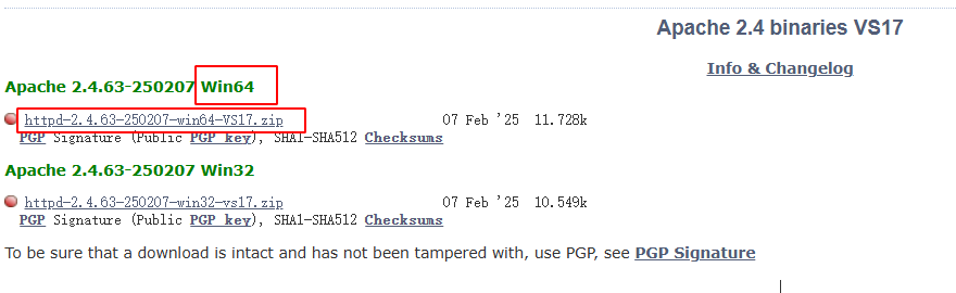 3,选择:httpd-2.4.63-250207-win64-VS17.zip