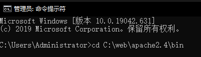 6,以管理员身份运行cmd ,打开你的 apache文件 bin 目录
