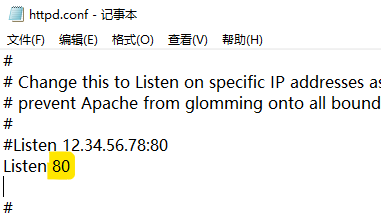 5,查找 Listen ,修改监听端口(默认为80端口)