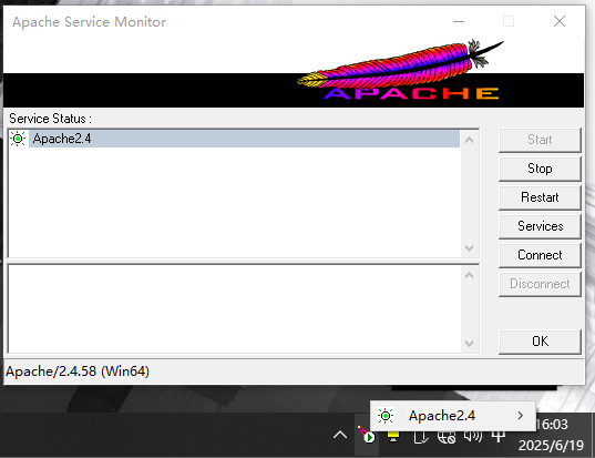 9,打开任务栏上的 Apache 2.4 启动 Apache 2.4 服务