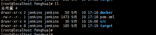 push完以后去 jenkins上点击 bulid now,再次构建,完成以后进入 jenkins工作目录。发现已经把docker 添加进来了。