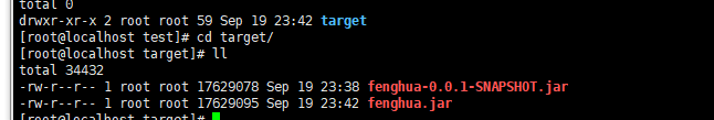 在另外一台我们远程部署工程的服务器上的指定目录我们看到,target文件。