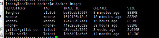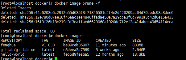 执行命令 [root@localhost docker]# docker image prune -f,并且把这个命令加入到jenkins中的编译后操作。