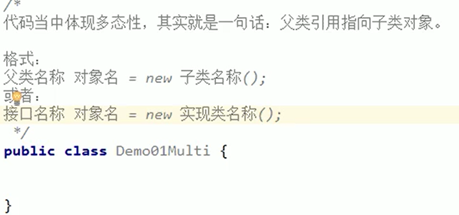 * 代码当中体现多态性,其实就是一句话:父类引用指向子类对象 |