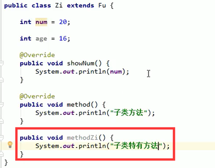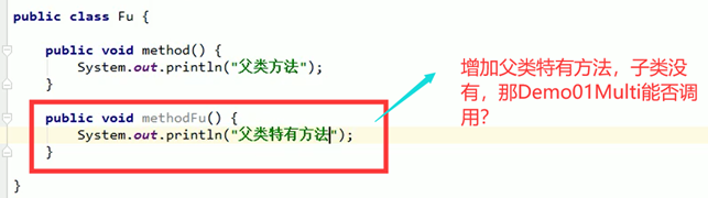 第四步:在父类中增加特有方法,子类中也增加特有方法