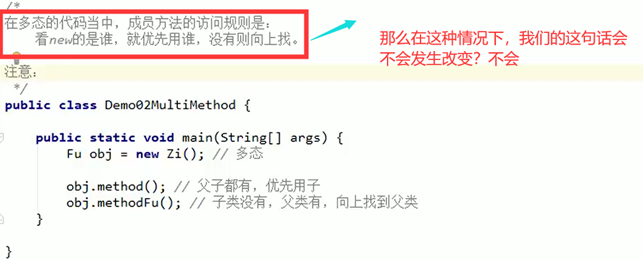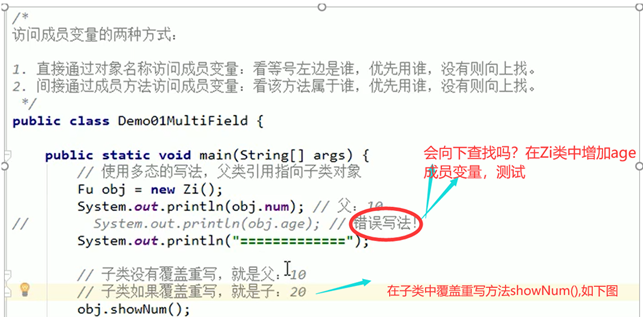此前我们曾经总结过在继承关系中成员变量的访问特点,那么接下来我用多态的写法-这个成员变量的访问特点是否有变化?注意:没有任何变化