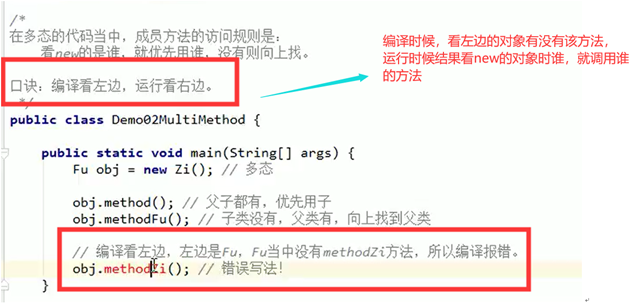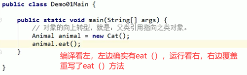 解释:编译看左边,运行看右边意思,但成员变量不在此列。