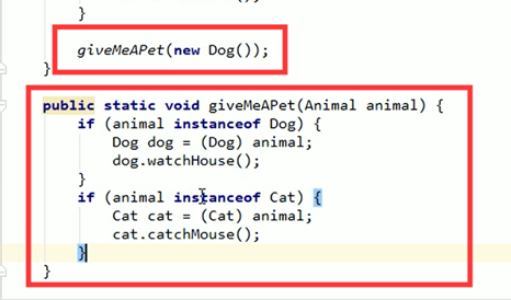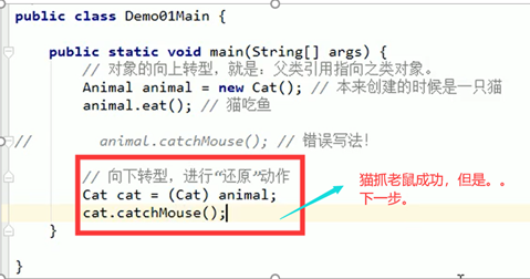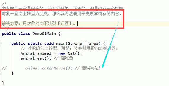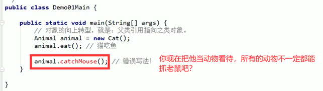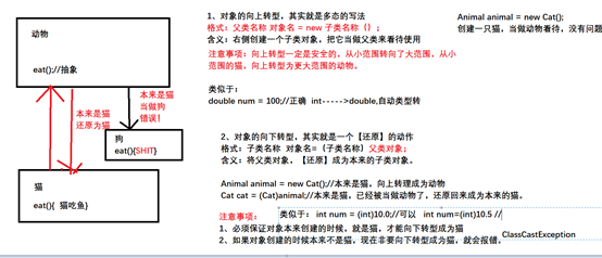 看图讲解:原本是一只猫,我现在转型为动物,这就是对象的向上转型。