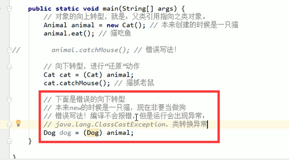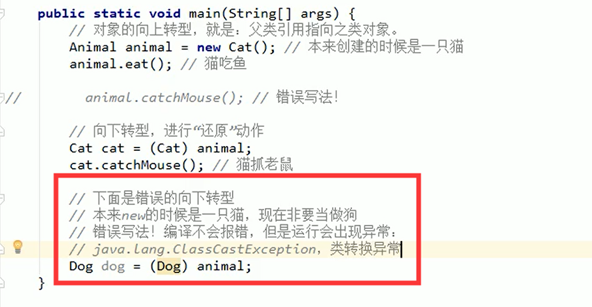 总结:向下转型,本来就是才能转,本来就不是,他就会报错ClassCastException.