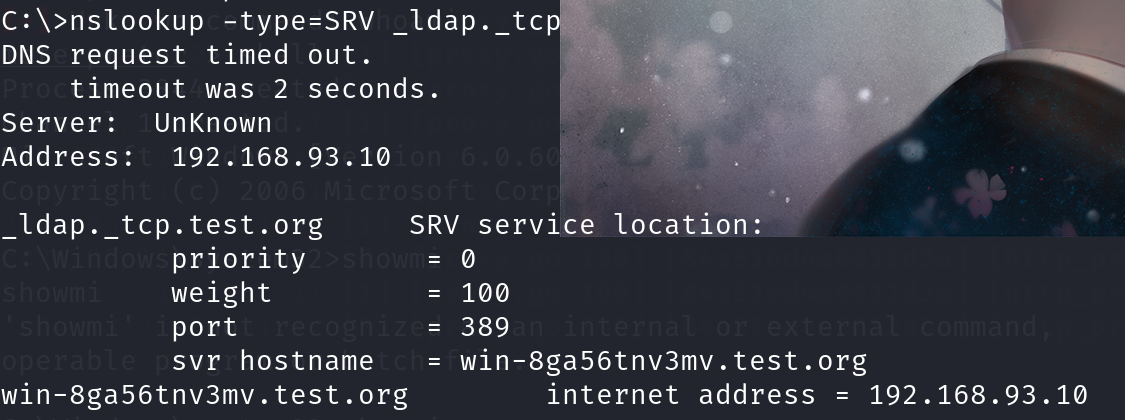 查看域控制器的主机名 nslookup -type=SRV _ldap._tcp
