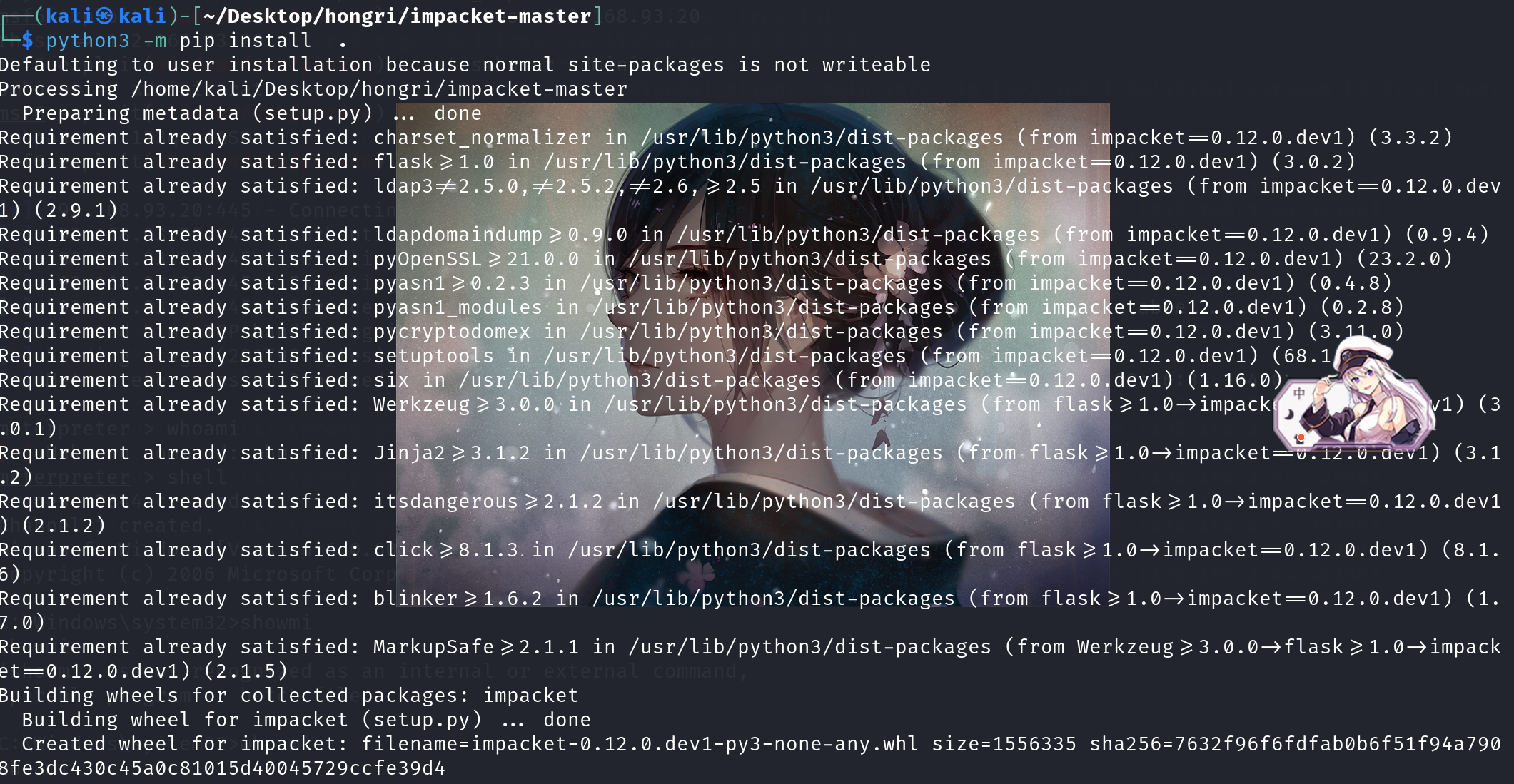 在我使用kali进行安装pip install安装时提示下载pip3,下载后出现包冲突,但是包冲突并没有影响wmiexec.py